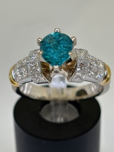 18K White Gold, Paraiba Tourmaline & Diamond Ring